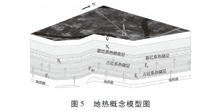 勘查區(qū)總體屬于地?zé)嵴^(qū),熱源來自上地幔。同時,由于勘查區(qū)與相鄰地區(qū)相比莫霍面相對較淺,對地幔熱能的傳遞較為有利;其基底起伏及斷裂構(gòu)造分布有利于地球內(nèi)熱能向勘查評價的熱儲層傳遞。