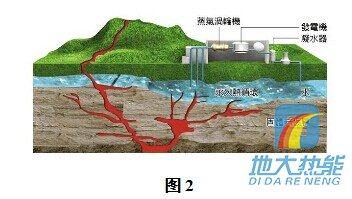 1)熱干巖過程法.與那些只從火山活動頻繁地區(qū)的溫泉中提取熱能的方法相比,熱干巖過程法將不受地理?xiàng)l件限制,可以在任何地方進(jìn)行熱能開采.首先將水通過壓力泵壓入地下4~6 km深處,此處巖石層的溫度大約在200℃左右.水在高溫巖石層被加熱后,通過管道加壓被提取到地面并輸入到熱交換器中,熱交換器推動汽輪發(fā)電機(jī)將熱能轉(zhuǎn)化成電能.同時(shí)推動汽輪機(jī)工作的熱水經(jīng)冷卻后可重新輸入地下供循環(huán)使用.這種地?zé)岚l(fā)電的成本與其他再生能源的發(fā)電成本相比是有競爭力的,而且這種方法在發(fā)電過程中不產(chǎn)生廢水、廢氣等污染,所以它是一種未來的新能源.