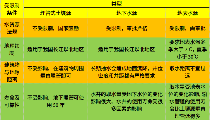 地大熱能專家介紹:地源熱泵空調(diào)系統(tǒng)的設計,主要包括兩大部分:一是建筑物內(nèi)的水環(huán)路空調(diào)系統(tǒng)的設計;二是地源熱泵空調(diào)系統(tǒng)的地下部分的設計,即地下耦合熱泵系統(tǒng)的地下熱交換器、地表水熱泵系統(tǒng)的地表水熱交換器,地下水熱泵系統(tǒng)的水井系統(tǒng)設計。下面我們對三種地源熱泵系統(tǒng)形式進行對比分析,如表1所示。