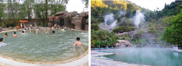熱水溫泉地處老圖山脈東緣山麓,分布面積為0.42平公里,日最大可采儲量1800~2100噸,中心孔深503米,自流水溫高達當?shù)胤悬c97℃,是全國水溫最高的溫泉之一。泉水中含有碳酸氯鈉、硫化氫、二氧化硅、氡、氟、碘、硼、銅、銀、鉀、鈦、鈄、鎂、鋰、鈣等卜幾種化學物質(zhì)及微量元素,對神經(jīng)衰弱、高血壓、糖尿病、皮膚病、胃病、布氏桿菌癇、多發(fā)性神經(jīng)炎、增生性脊柱炎、氣管炎等30多種常見疾病有很好的療效和較強的保健作用。
