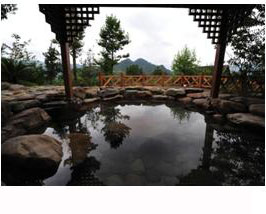 貴州黃平浪洞溫泉風(fēng)景黃平浪洞森林溫泉度假山莊位于貴州省黔東南州黃平北面浪洞鄉(xiāng)溫水塘村,處于兩州一市交界(黔東南州、黔南州和遵義市),更是處在舞陽河國家級風(fēng)景名勝區(qū)范圍內(nèi),具有較好好區(qū)位優(yōu)勢。四周依山傍水,原始植被保存良好,是天然的氧吧。浪洞溫泉在100平方米范圍內(nèi)由5~7年泉眼平地,噴涌而出,日流量每天1000噸左右。溫泉無色,甜味,井口水溫49℃,根據(jù)SI02含量計算,推測靠巖面附近溫度可達60℃,按國家礦泉水溫度分類標(biāo)準(zhǔn),為高熱礦泉水(42-100℃)。該溫泉地?zé)崴?/a>化學(xué)類型為HCO3-NA,屬弱堿性(PH=8),低硬度、低礦化度的極軟水,符合飲用水標(biāo)準(zhǔn)。