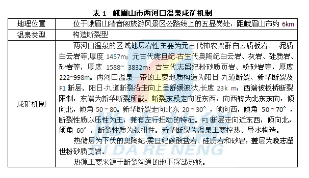 兩河口溫泉地處峨眉山山區(qū)兩河口地下3000米處深處循環(huán)增溫的承壓氡溫泉,山區(qū)環(huán)境優(yōu)美、生態(tài)良好,堪稱“洗肺”的天然氧吧。峨眉山(氡)溫泉是特殊地質(zhì)斷層深部承壓循環(huán)所形成的特定化學特征的熱礦水。探鉆井深1652m,井口自溢水溫45℃,其中富含偏硅酸、鐳、氡和硫化氫等50余種有益人體的礦物質(zhì)和微量元素。具有很高的醫(yī)療價值,能有效治療多種慢性疾病,對心律和血壓的調(diào)節(jié)、慢性類風濕關(guān)節(jié)炎和高血壓以及減肥的治療效果十分顯著。